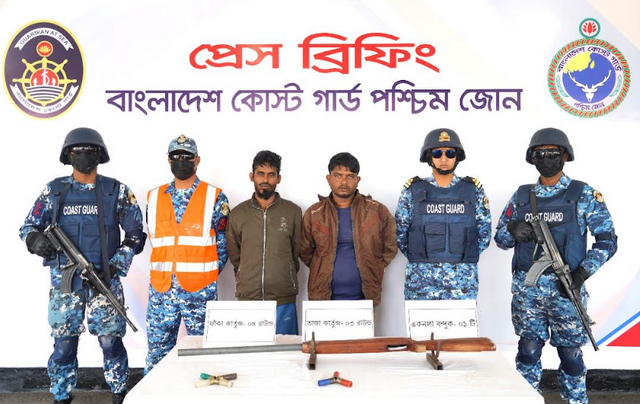 কোস্ট গার্ডের অভিযানে অস্ত্র ও গোলাবারুদ সহ সুন্দরবনের দুর্ধর্ষ ডাকাত করিম শরীফ বাহিনীর ২ সহযোগী আটক।