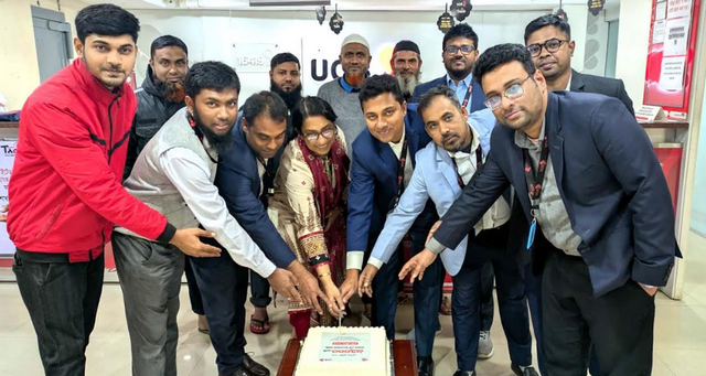 ইউনাইটেড কমার্শিয়াল ব্যাংক (ইউসিবি) পিএলসি-২০২৫ সালে এক বছরে ১৩ হাজার কোটি টাকার নেট ডিপোজিট প্রবৃদ্ধির জন্য ফকিরহাট শাখায় কেক কেটে এই সাফল্য উদযাপন করা হয়।