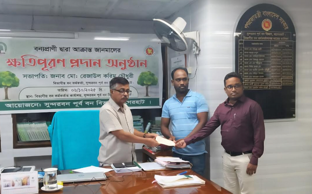 পূর্ব সুন্দরবনের বিভাগীয় বন কর্মকর্তা রেজাউল করিম চৌধুরী জানান,বন্যপ্রাণী দ্বারা আক্রান্ত ব্যক্তির ক্ষতিপূরণ বিধিমালা রয়েছে। যেটি ২০২১  অনুসারে অনুনোদন হয়। সেই বিধান মতে কুমিরের আক্রমণে আহত ব্যাক্তির আবেদনের পর প্রয়োজনীয় তদন্ত করা হয়। এর পর অনুমোদন হয় এক লক্ষ টাকা। আজ  ক্ষতিপূরণের এক লক্ষ টাকার চেক আহত সাইফুল জমাদ্দার কে বুঝিয়ে দেওয়া হয়েছে। তিনি আরো  জানান, এছাড়া গত ৩১ মে-২০২৫ সুন্দরবন সংলগ্ন ঢাংমারী খালে গৃহস্থালি কাজ করার সময় কুমিরের হামলায় আহত হন সুচিত্রা সরদার নামক এক গৃহিনী। তিনি ক্ষতিপুরনের জন্য আবেদন করেছেন। সেটি প্রক্রিয়াদিন আছে।