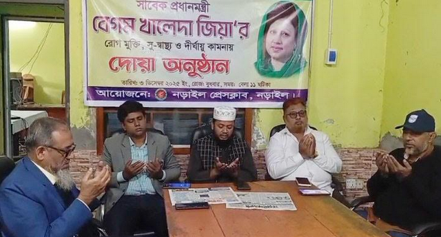 খালেদা জিয়ার সু—স্বাস্থ ও দীর্ঘায়ু এবং রোগ মুক্তি কামনা করে নড়াইল প্রেসক্লাবে কোরআনখানি ও  দোয়া মাহফিল