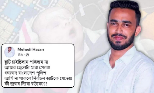 আসন্ন জাতীয় সংসদ নির্বাচনকে কেন্দ্র করে দায়িত্ব পালনের কথা বলে ছুটি না পাওয়ার অভিযোগ তুলে সামাজিক যোগাযোগমাধ্যমে পোস্ট দিয়েছেন বাংলাদেশ পুলিশের সদস্য মেহেদি হাসান। তিনি দাবি করেন, সন্তানের মৃত্যুর মতো ব্যক্তিগত বিপর্যয়ের মধ্যেও তাকে ছুটি দেওয়া হয়নি।