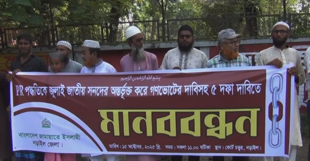জুলাই সনদ বাস্তবায়নে গনভোট-সংসদের দুই কক্ষে পিআর সহ ৫ দফা দাবীতে জামায়াতের মানববন্ধন