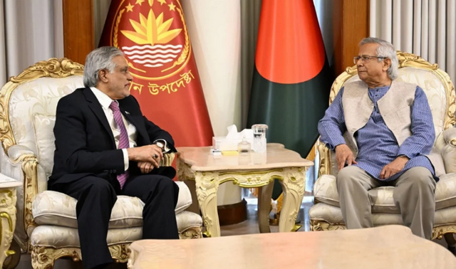 প্রধান উপদেষ্টা অধ্যাপক মুহাম্মদ ইউনূসের সঙ্গে সাক্ষাৎ করেছেন বাংলাদেশ সফররত পাকিস্তানের উপ-প্রধানমন্ত্রী ও পররাষ্ট্রমন্ত্রী ইসহাক দার।
