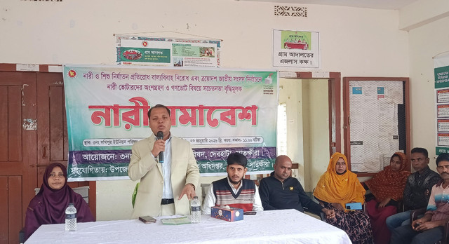 হোম খুলনাসাতক্ষীরা দেবহাটায় সখিপুরে গণভোট ও বাল্য বিবাহ নিরোধ সম্পর্কে অবহিত করতে নারী সমাবেশ অনুষ্ঠিত