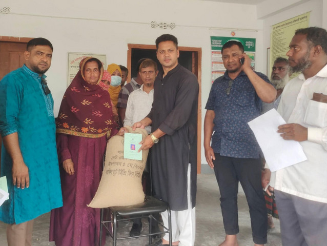 হোম খুলনাসাতক্ষীরা দেবহাটার নওয়াপাড়ায় ভিজিডব্লিউ প্রকল্পের চাল বিতরণ