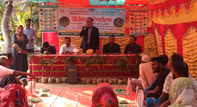 নড়াইল সদর উপজেলার গোবরা এলাকায় বসতবাড়ির আঙিনায় পারিবারিক পুষ্টি বাগান স্থাপন প্রকল্পের আওতায় ‘উঠান বৈঠক’ অনুষ্ঠিত হয়েছে। ২০২৫-২৬ অর্থবছরের কৃষি সমৃদ্ধি লক্ষ্যমাত্রা অর্জনে জেলা কৃষি সম্প্রসারণ অধিদপ্তর এই অনুষ্ঠানের আয়োজন করে।