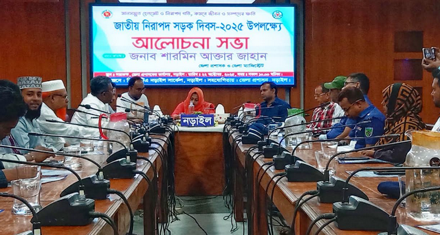 বাংলাদেশ সড়ক পরিবহন কর্তৃপক্ষ (বিআরটিএ) নড়াইল সার্কেলের আয়োজনে এবং জেলা প্রশাসনের সহযোগিতায় এই র‌্যালি ও আলোচনা সভায় সভাপতিত্ব করেন জেলা প্রশাসক শারমিন আক্তার জাহান। এ সময় উপস্থিত ছিলেন অতিরিক্ত জেলা প্রশাসক (সার্ক) লিংকন বিশ্বাস,সড়ক বিভাগের নির্বাহী প্রকৌশলী মোঃ নজরুল ইসলাম,বিআরটিএ ইন্সপেক্টর ফরহাদ হোসেন,হাইওয়ে থানার ওসি শেখ সেকেন্দার আলী পিপিএম ,নায়েক মো: আলাউদ্দিন আহম্মেদ প্রমুখ।