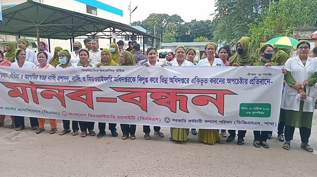 নড়াইলে নার্সদের মানববন্ধন কর্মসূচি পালিত