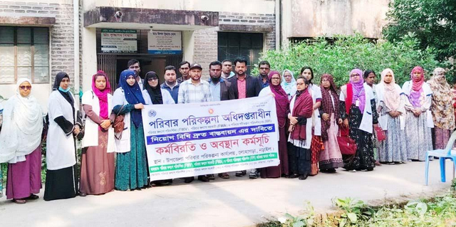নড়াইলে পরিবার পরিকল্পনায় চাকরিরত তৃতীয় শ্রেণীর কর্মচারীদের কর্মবিরতি ও অবস্থান কর্মসূচি পালন