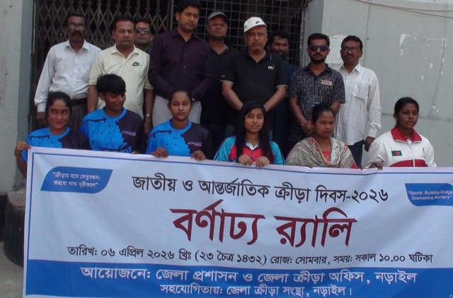 ক্রীড়ায় হবে সেতুবন্ধন, করবো বাধা দূরীকরণএই প্রতিপাদ্যকে সামনে রেখে নড়াইলে জাতীয় আন্তর্জাতিক ক্রীড়া দিবস২০২৬ পালিত হয়েছে। সোমবার (০৬ এপ্রিল) সকালে জেলা প্রশাসন জেলা ক্রীড়া অফিসের আয়োজনে এবং জেলা ক্রীড়া সংস্থার সহযোগিতায় দিবসটি উপলক্ষে এক বর্ণাঢ্য র‌্যালি সংক্ষিপ্ত আলোচনা সভার আয়োজন করা হয়।