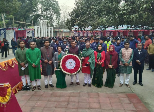 প্রথমে জেলা প্রশাসক ড. মোহাম্মদ আবদুল ছালাম এবং পুলিশ সুপার মোহাম্মদ আল মামুন সিকদার–এর নেতৃত্বে জেলা প্রশাসন ও পুলিশ প্রশাসনের পক্ষ থেকে শহীদদের বেদীতে শ্রদ্ধাঞ্জলি জানানো হয়। এর পরপরই জেলা মুক্তিযোদ্ধা সংসদ, জেলা বিএনপি সহ অন্যান্য রাজনৈতিক দল, বিভিন্ন সরকারি–বেসরকারি দপ্তর, সামাজিক–সাংস্কৃতিক সংগঠন এবং শিক্ষা প্রতিষ্ঠানের পক্ষ থেকে একে একে পুষ্পস্তবক অর্পণ করা হয়।