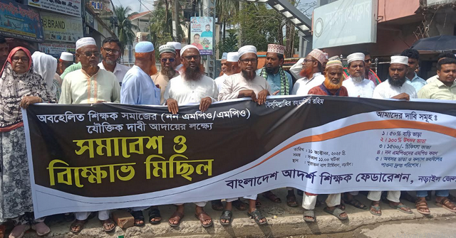 শিক্ষক সমাজের অধিকার আদায়ের লক্ষ্যে ৫ দফা দাবিতে নড়াইলে বিক্ষোভ মিছিল ও মানববন্ধন করেছে বাংলাদেশ আদর্শ শিক্ষক ফেডারেশন। শনিবার (১১ অক্টোবর) দুপুরে নড়াইল পুরাতন বাস টার্মিনালে মানববন্ধন শেষে একটি মিছিল শুরু হয়ে প্রেসক্লাবের সামনে এসে শেষ হয়।