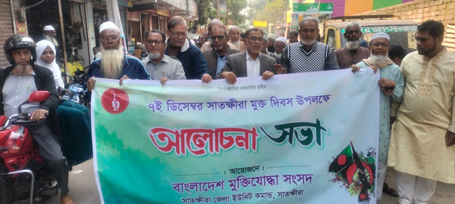 মুকিাযোদ্ধা সংসদের আহŸায়ক শহিদুল ইসলাম এসময় সাতক্ষীরার মুক্তিযুদ্ধের নানা ঘটনার স্মৃতি তুলে ধরেন জানান, ২ মার্চ সাতক্ষীরা শহরে পাকিস্তান বিরোধী মিছিলে গুলিতে আবদুর রাজ্জাক নিহত হওয়ার পর জেলায় আন্দোলন তীব্র হয়ে ওঠে। মুক্তিযুদ্ধের খরচ জোগাতে মুক্তিযোদ্ধারা ট্রেজারি থেকে অস্ত্র এবং ন্যাশনাল ব্যাংক থেকে টাকা ও অলংকার সংগ্রহ করেন। ২৭ মে ভোমরা সীমান্তের সম্মুখ যুদ্ধে পাকিস্তানি সেনার দুই শতাধিক সদস্য নিহত এবং তিনজন মুক্তিযোদ্ধা শহীদ হন। পরবর্তী গেরিলা অভিযানে শহীদ হন আরও ৩৩ জন। ৩০ নভেম্বর রাতের টাইম বোমা বিস্ফোরণে সাতক্ষীরার পাওয়ার হাউস উড়িয়ে দিলে পাকিস্তানি বাহিনীর মনোবল ভেঙে পড়ে এবং ৬ ডিসেম্বর রাতে তারা বিভিন্ন সেতু উড়িয়ে পালিয়ে যায়।