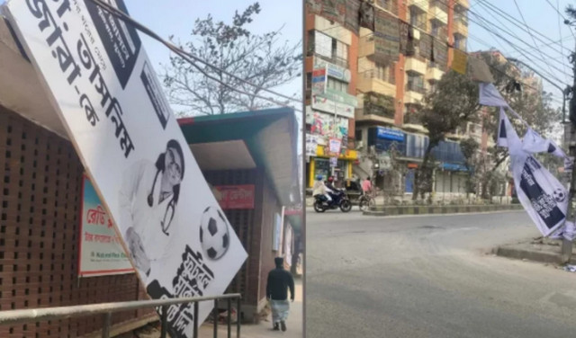 ফেসবুকে কয়েকটি ছেঁড়া ব্যানারের ছবি পোস্ট ক্যাপশনে লিখেছেন, ‘আমাদের ব্যানার যেখানে যেখানে ছিল, সেই জায়গাগুলোতে এখন কাদের ব্যানার টাঙ্গানো আছে সেটা এলাকার মানুষ দেখছেন।’
