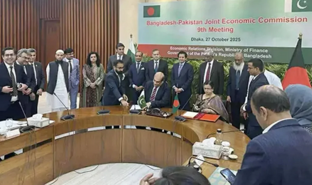 প্রায় দুই দশকের দীর্ঘ বিরতির পর সকালে রাজধানীর আগারগাঁওয়ে পরিকল্পনা কমিশনে অনুষ্ঠিত বাংলাদেশ ও পাকিস্তানের মধ্যে নবম যৌথ অর্থনৈতিক কমিশনের (জে ই সি) বৈঠকে ঢাকা পাকিস্তানি বাজারে বাংলাদেশি পণ্যের শুল্কমুক্ত ও কোটামুক্ত প্রবেশাধিকার চেয়েছে।
