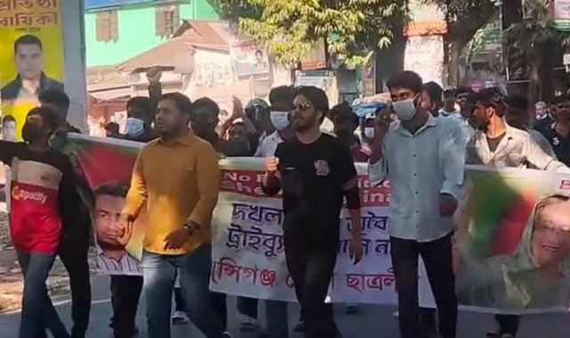 শেখ হাসিনার মামলার রায় ঘোষণার পরদিন সকালেই আকস্মিকভাবে বের হওয়া এই মিছিল নিয়ে নানা ধরনের আলোচনা শুরু হয়েছে এলাকায়।