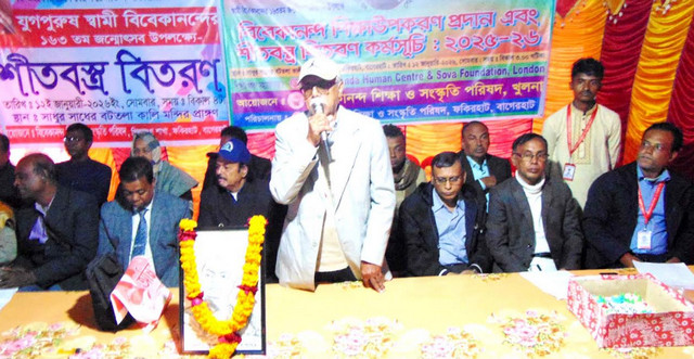 বাগেরহাটের ফকিরহাট উপজেলার পিলজংগ ইউনিয়নের সাধুর সাধের বটতলা শ্রী শ্রী কালি মন্দির চত্ত্বরে স্বামী বিবেকানন্দের ১৬৩তম জন্ম উৎসব পালন উপলক্ষে শিক্ষার্থীদের মাঝে শিক্ষা উপকরণ ও শীতবস্ত্র বিতরণ করা হয়েছে।