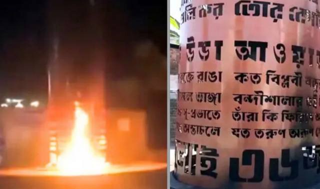 ফেনীতে জুলাই শহীদ স্মৃতিস্তম্ভে আগুন