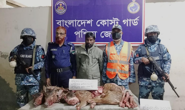 বুধবার( ২৬ নভেম্বর) দুপুরে কোস্ট গার্ড মিডিয়া কর্মকর্তা লেফটেন্যান্ট কমান্ডার সিয়াম-উল-হক এ তথ্য জানান।  গোপন সংবাদের ভিত্তিতে বুধবার মধ্যরাত ১ টায় কোস্ট গার্ড স্টেশন হারবাড়িয়া ও পুলিশের সমন্বয়ে বাগেরহাটের মোংলা থানাধীন কানাইনগর এলাকায় যৌথ অভিযান পরিচালনা করা হয়। অভিযান চলাকালীন উক্ত এলাকায় তল্লাশি করে ৩২ কেজি হরিণের মাংস, ২টি মাথা, ৮টি পা ও প্রায় ২ হাজার মিটার হরিণ শিকারের ফাঁদসহ ১ হরিণ শিকারিকে আটক করা হয়। তবে আটক শিকারীর নাম ঠিকানা জানায়নি কোস্টগার্ড।