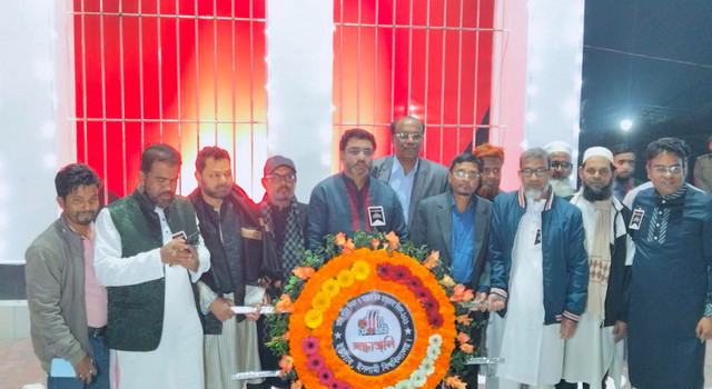 শনিবার (২১ ফেব্রুয়ারি) একুশের প্রথম প্রহরে বিশ্ববিদ্যালয়ের কেন্দ্রীয় শহিদ মিনারের বেদিতে পুষ্পস্তবক অর্পণ করেন সংগঠনটির সদস্যরা।