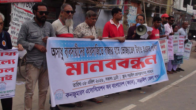 ভোজ্যতেলের কৃত্রিম সংকটের প্রতিবাদে নড়াইলে ‘ক্যাব’-এর মানববন্ধন