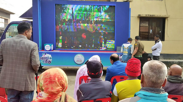 ভ্রাম্যমাণ এ ভোটের গাড়িতে জুলাই গণ অভ্যুত্থান, জুলাই যোদ্ধা, বুয়েট শিক্ষার্থী আবরার ফাহাদ হত্যা এবং ফেলানী হত্যা নিয়ে নির্মিত প্রামাণ্যচিত্র প্রদর্শন করা হচ্ছে। সংস্কৃতি ও তথ্য মন্ত্রণালয়ের উদ্যোগে তৈরি করা পাঁচটি পিভিসির মাধ্যমে তুলে ধরা হচ্ছে অতীতের গণতন্ত্রহীনতা, সীমান্ত হত্যা, তরুণ ও নারীদের বঞ্চিত হওয়ার ইতিহাস। এর মাধ্যমে সাধারণ মানুষকে গণভোট ও সংসদ নির্বাচন বিষয়ে সচেতন করা হচ্ছে। এতে গণভোট, সংসদ নির্বাচন ও ভোট প্রদানের গুরুত্ব তুলে ধরা হচ্ছে। এ গাড়িটি কোন প্রার্থীর বিষয়ে প্রচার করছে না।