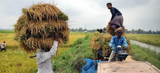 চলছে বৈশাখ মাস, মাঠে মাঠে বোরো ধান কাটার ধূম পড়েছে। কিন্তু একদিকে শ্রমিক সংকট, তারপর বৈরী আবহাওয়ার কারনে আকাশে কখনো কালো মেঘ। মাঝে মাঝে ঝড়-বৃষ্টি, আবার ঝকঝকে পরিষ্কার। এবার বোরো ধানের বাম্পার ফলন হলেও শ্রমিক সংকট ও অনুকূল আবহাওয়া নিয়ে শংকায় রয়েছেন কৃষক। আর শ্রমিক সংকট ও বৈরী আবহাওয়ার মধ্যে ধান (ফসল) কেটে ঘরে তুলতে ব্যস্ত সময় পার করছেন যশোরের মনিরামপুর উপজেলার বোরো চাষীরা। এক প্রকার শ্রমিক সংকটে বৈরী আবহাওয়ার সময় মিলিয়ে চাষীদের কপালে পড়ছে চিন্তার ভাঁজ। তারপরেও এক মণ ধানের দামেই মিলছে না একজন শ্রমিক। উপজেলা ব্যাপী বিভিন্ন এলাকা ঘুরে দেখা যায়, বিভিন্ন মাঠে কৃষকরা কেউ ধান কাটছে, কেউ বাঁধছে। আবার কেউ পরিবহন করে ঘরে তুলতে ব্যস্ত সময় পার করছে। অনেকে আবার ধান কেটে মাঠেই সারছেন মাড়াই এর কাজ। এ কাজে পুরুষের পাশাপাশি আছে নারীরাও। বৈরী আবহাওয়া বেশি থাকায় কাজের জন্য সকাল ও বিকাল টাইমকেই বেছে নিচ্ছে কৃষকরা। উপজেলার বালিধা গ্রামের তরুন কৃষক হাসিবুর রহমান জানান, আড়াই বিঘা জমিতে ধান লাগিয়েছি, পোকাই কেটে দেওয়ার পরও ফসল অনেক ভালো হয়েছে। তবে শ্রমিকের ধান কাটার যে মূল্য তাতে এক মণ ধানেও একজন শ্রমিক পাওয়া যাচ্ছে না। এর কারণে ধান ঘরে তুলতে মোট চাষকৃত ধানের এক-তৃতীয়াংশ শ্রমিকের পিছনে ব্যয় হচ্ছে। দত্তকোনা গ্রামের কৃষক মিন্টু জানান, এই বছরে বোরো ধানের মৌসুমে ২ একর জমিতে ধান রোপন করেছি। পরিবেশ অনুকুলে থাকলে দায় দেনা পরিশোধ করে পরিবারের ভরণপোষণের পাশাপাশি নিজের আর্থিক যোগান দিতে সক্ষম হব। এছাড়াও হাসাডাঙ্গা গ্রামের আরশাফ আলী ও আমিনপুর গ্রামের মশিয়ার রহমানসহ আরো অনেক প্রান্তিক চাষীর সাথে কথা বলে জানাযায় গত বছর শ্রমিকের দৈনিক মজুরী ছিলো ৭/৮ শত টাকা। কিন্তু এ বছর ১১/১২ শত টাকা দিয়েও শ্রমিক পাওয়া যাচ্ছে না। তার পরেও এবার কৃষকরা ধানের দর বাজার মূল্য ভালো পাচ্ছে না। এলাকার বোরো ধান চাষীরা শ্রমিক সংকটের কারনে বেশী দামে শ্রমিকের মজুরী দিয়ে ফসল ঘরে তুলতে বাধ্য হচ্ছে। যার কারনে কৃষকরা এবার বোরো ধান চাষ করে অনেকেই ক্ষতির সম্মূখীন হচ্ছে। উপজেলা কৃষি কর্মকর্তা মোছাঃ মাহমুদা আক্তার জানিয়েছেন, চলতি বোরো মৌসুমে উপজেলায় ২৭ হাজার ১০ হেক্টর জমিতে বোরো আবাদ হয়েছে। লক্ষ্যমাত্রাও একই ছিল। সব কিছু অনুকুলে থাকলে প্রায় ১৬ হাজার ২শ’ ৬০ মেট্রিক টন ধান উৎপাদনের আশা করা হচ্ছে। তারপরেও শ্রমিক সংকট ও প্রতিকূল আবহাওয়ার আশংকায় দ্রুত কৃষকের ধান ঘরে তুলতে সব শ্রেণি-পেশার মানুষকে কৃষকের পাশে দাঁড়াতে উৎসাহ প্রদান করেছেন।