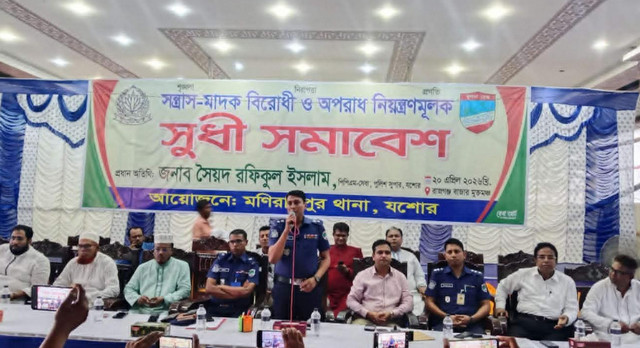 হোম খুলনাযশোর মনিরামপুর থানা পুলিশের আয়োজনে সন্ত্রাস-মাদক বিরোধী ও অপরাধ নিয়ন্ত্রণমূলক সুধী সমাবেশ অনুষ্ঠিত
