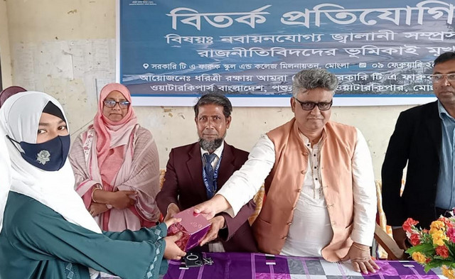 ০৯ ফেব্রুয়ারি সোমবার সকালে সরকারি টি এ ফারুক স্কুল এন্ড কলেজ মিলনায়তনে ”নবায়নযোগ্য জ্বালানি সম্প্রসারণে রাজনীতিবিদদের ভূমিকাই মূখ্য” শীর্ষক বিতর্ক প্রতিযোগিতার পুরস্কার বিতরনী অনুষ্ঠানে বক্তারা একথা বলেন। ধরিত্রী রক্ষায় আমরা (ধরা), ওয়াটারকিপার্স বাংলাদেশ, সরকারি টি এ ফারুক স্কুল এন্ড কলেজ ও পশুর রিভার ওয়াটারকিপারের যৌথ আয়োজনে এ বিতর্ক প্রতিযোগিতার আয়োজন করা হয়।