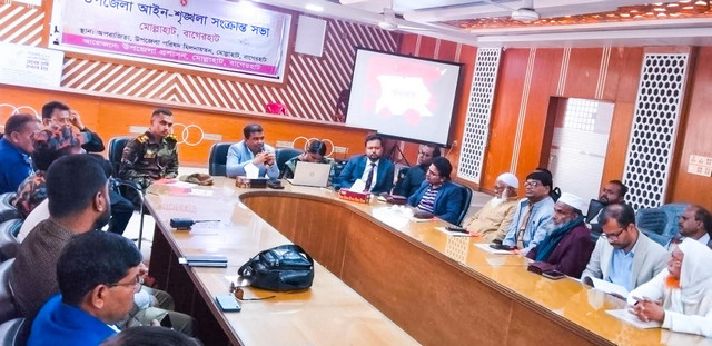 বাগেরহাটের মোল্লাহাটে উপজেলা আইন-শৃঙ্খলা ও সমন্বয় কমিটির মাসিক সভা অনুষ্ঠিত হয়েছে। বৃহস্পতিবার (২৯ জানুয়ারি) উপজেলা প্রশাসনের আয়োজনে, উপজেলা পরিষদ মিলনায়তনে অনুষ্ঠিত উক্ত সভায় সভাপতিত্ব করেন উপজেলা নির্বাহী অফিসার শ্যামানন্দ কুন্ডু। তিনি ত্রয়োদশ জাতীয় সংসদ নির্বাচনের আচরণ বিধি ও শান্তি-শৃঙ্খলা বজায় রাখার বিভিন্ন দিকনির্দেশনা প্রদান করেন। উপজেলা আইন শৃঙ্খলা কমিটির সদস্যবৃন্দ আইনশৃঙ্খলা পরিস্থিতি পর্যালোচনা করে নীজ নীজ মতামত ব্যক্ত করেন এবং মাদক ও সন্ত্রাস দমনে সম্মিলিতভাবে কাজ করার আহ্বান জানান। সভায় অন্যান্যদের মাঝে উপস্থিত ছিলেন ও বক্তব্যদেন মোল্লাহাট আর্মি ক্যাম্পের ক্যাপ্টেন শামীম আহমেদ, সহকারী কমিশনার(ভুমি) সুস্মিতা সাহা, এস আই মনজির আহমেদ, প্রাণিসম্পদ কর্মকর্তা ডাঃ মোঃ হাসান আলী, কৃষি কর্মকর্তা মোঃ ইমরান হোসেন, সিনিয়র উপজেলা মৎস্য কর্মকর্তা রাজিব রায়, উপজেলা প্রকৌশলী ফেরদৌস আলম, অতিরিক্ত কৃষি কর্মকর্তা মোঃ মেহেদী হাসান, পল্লী বিদ্যুৎ ডিজিএম বিশুদ্ধানন্দ পুরব্রাহ্মণ, উপজেলা বিএনপি’র সভাপতি শেখ হাফিজুর রহমান, সাধারণ সম্পাদক মোঃ হারুন আল রশীদ, সাবেক আহ্বায় শিকদার জামাল উদ্দিন, সাবেক সাধারণ সম্পাদক শেখ শাহেদ আলী, উপজেলা জামায়াতে ইসলামীর আমির মোঃ হাসমত আলী সরদার, সেক্রেটারি হাফেজ মোঃ হেদায়েত উল্লাহ, সহ সেক্রেটারি মোঃ নাসির উদ্দিন, উপজেলা জামায়াতের যুব বিভাগের সভাপতি মোঃ হাসান আলী, সেক্রেটারি মোঃ পারভেজ আলম, এনসিপির উপজেলা সমন্বয়ক কেএম ফয়সাল রহমান, যুগ্ম সমন্বয়ক মিনহাজুল ইসলাম ও আলম চৌধুরী, সদস্য খায়রুজ্জামান দুখু, মতিউর রহমান ও জাতীয় ছাত্র শক্তির বাগেরহাট জেলা সদস্য সচিব সোহাগ মোল্লা রাব্বি, মোল্লাহাট প্রেসক্লাবের সাধারণ সম্পাদক মোহাম্মদ আলী মোহন, সাংগঠনিক সম্পাদক মোঃ শরিফুল ইসলাম দিদার, মোঃ আরিফুল ইসলাম সহ বিভিন্ন দপ্তরের কর্মকর্তা, জনপ্রতিনিধি, রাজনৈতিক নেতৃবৃন্দ শিক্ষক প্রতিনিধি প্রমুখ।