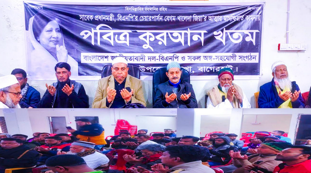 বাংলাদেশ জাতীয়তাবাদী দলের চেয়ারপারসন ও সাবেক তিন বারের প্রধানমন্ত্রী বেগম খালেদা জিয়ার মৃত্যুতে উপজেলা বিএনপির পক্ষ থেকে পবিত্র কুরআন খতম ও দোয়া মাহফিল অনুষ্ঠিত হয়েছে।