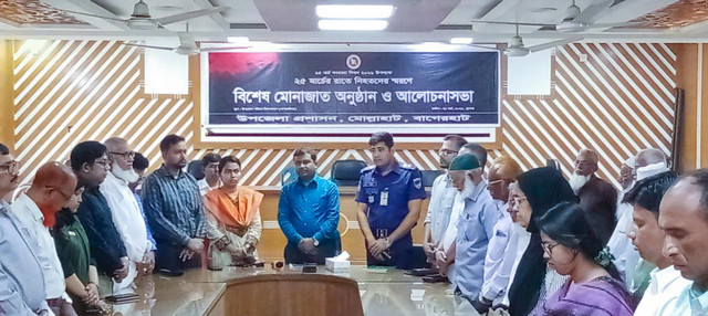 বাগেরহাটের মোল্লাহাটে ২৫ মার্চ কালরাতে নিহতদের স্মরণে আলোচনা সভা ও দোয়া মাহফিল অনুষ্ঠিত হয়েছে। বুধবার (২৫ মার্চ) উপজেলা পরিষদ মিলনায়তনে এ কর্মসূচির আয়োজন করা হয়।
