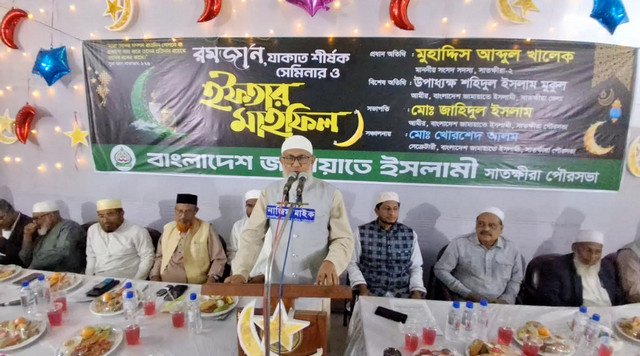 বাংলাদেশ জামায়াতে ইসলামী সাতক্ষীরা শহর শাখার উদ্যোগে আয়োজিত “ রমজান ও যাকাত ” শীর্ষক সেমিনারে প্রধান অতিথির বক্তব্যে তিনি এসব কথা বলেন।