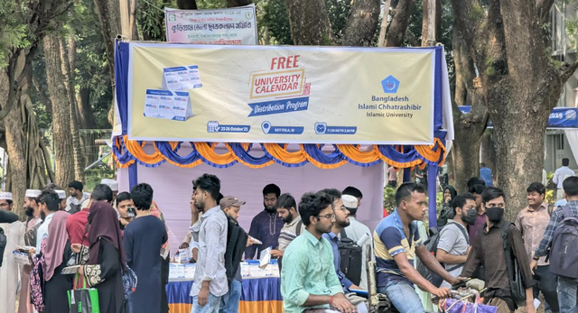 ইসলামী বিশ্ববিদ্যালয়ের (ইবি) শিক্ষার্থীদের মাঝে বিনামূল্যে ক্যালেন্ডার বিতরণ করেছে শাখা ছাত্রশিবিরের। শনিবার (২৬ অক্টোবর) বেলা ১১টা থেকে বিশ্ববিদ্যালয়ের বটতলায় দুই দিনব্যাপী ক্যালেন্ডার বিতরণ কার্যক্রম শুরু করে সংগঠনটি।