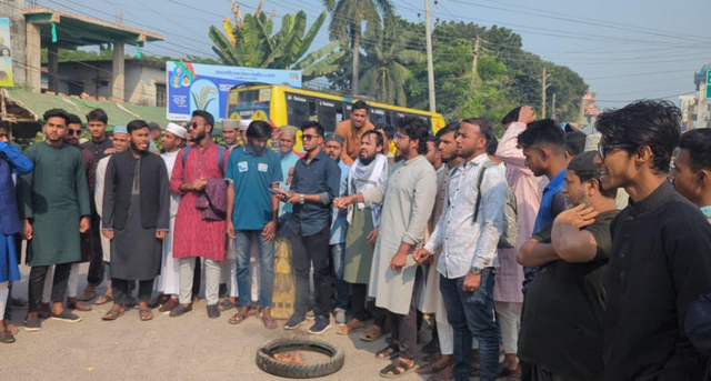 সাতক্ষীরায় জুলাই স্মৃতিস্তম্ভে আগুন দেয়ার প্রতিবাদে টায়ার জ্বালিয়ে বিক্ষোভ, অগ্নিকান্ডের ঘটনা ঘটেনি দাবি পুলিশের
