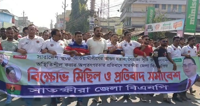সাতক্ষীরায় বিএনপির বিক্ষোভ মিছিল ও প্রতিবাদ সমাবেশ