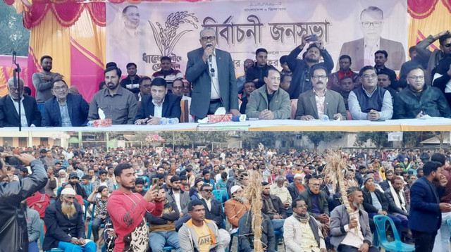 আসন্ন ত্রয়োদশ জাতীয় সংসদ নির্বাচনে সাতক্ষীরা-২ (সাতক্ষীরা সদর ও দেবহাটা) আসনে বাংলাদেশ জাতীয়তাবাদী দল (বিএনপি) মনোনীত ধানের শীষের সংসদ সদস্য পদপ্রার্থী আলহাজ্ব মোঃ আব্দুর রউফের বিশাল নির্বাচনী জনসভা অনুষ্ঠিত হয়েছে। শনিবার (২৪ জানুয়ারী) বিকালে ডি.বি ইউনাইটেড হাইস্কুল মাঠে ধুলিহর ও ব্রহ্মরাপুর ইউনিয়নবাসীর আয়োজনে সাতক্ষীরা জেলা বিএনপি সাবেক সদস্য বীর মুক্তিযোদ্ধা স.ম শহিদুল ইসলামের সভাপতিত্বে নির্বাচনী জনসভায় প্রধান অতিথি হিসেবে বক্তব্য রাখেন সাতক্ষীরা-২ (সাতক্ষীরা সদর ও দেবহাটা) আসনে বাংলাদেশ জাতীয়তাবাদী দল (বিএনপি) মনোনীত ধানের শীষের সংসদ সদস্য পদপ্রার্থী আলহাজ্ব মোঃ আব্দুর রউফ। প্রধান অতিথির বক্তব্যে তিনি বলেন, সাতক্ষীরার উন্নয়নে মানুষের ভাগ্য পরিবর্তন ও নতুন বাংলাদেশ গড়তে ধানের শীষের বিকল্প নেই। ধানের শীষ এখন সাতক্ষীরা-২ আসনের জনগণের ভালোবাসা ও আস্থার প্রতীক। বৈষম্যহীন অসাম্প্রদায়িক বাংলাদেশ গড়তে উন্নয়নের মার্কা ধানের শীষে ভোট দিন। তিনি আরো বলেন, মিথ্যা রাজনৈতিক প্রতিশ্রুতির নামে মানুষের ইমান নিয়ে ছিনিমিনি খেলছে একটি দল। এরা বিএনপির বিরুদ্ধে কুৎসা রটাচ্ছে। এরা স্বাধীনতা বিরোধী। এদের বিরুদ্ধে সবাইকে ঐক্যবদ্ধ প্রতিরোধ গড়ে তুলতে হবে।