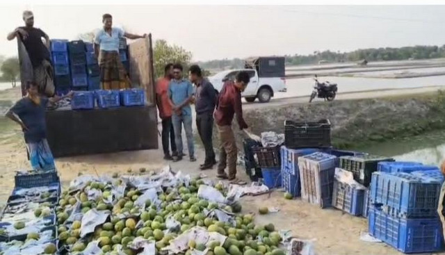 পরে জনস্বাস্থ্যের ঝুঁকি এড়াতে জব্দকৃত আম গুলো সন্ধ্যায় শুইলপুর বিজিবি ক্যাম্প সংলগ্ন এলাকায় গাড়ির চাকায় পিষ্ট করে বিনষ্ট করা হয়।