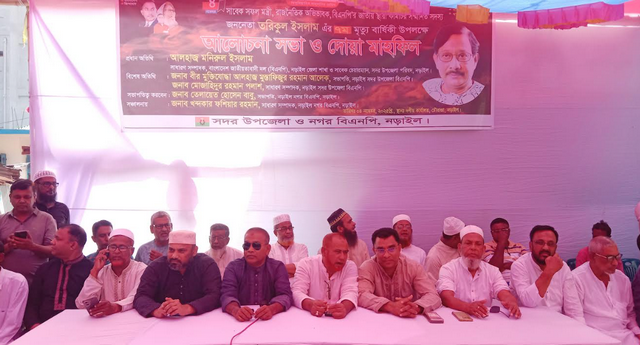 অনুষ্ঠানে নগর বিএনপির সভাপতি তেলায়েত হোসেন বাবুর সভাপত্বে প্রধান অতিথি ছিলেন জেলা বিএনপির সাধারণ সম্পাদক আলহাজ্ব মনিরুল ইসলাম, বিশেষ অতিথি হিসেবে উপস্থিত ছিলেন নড়াইল সদর উপজেলা বি এন পি’র সভাপতি বীর মুক্তিযোদ্ধা মোস্তাফিজুর রহমান আলেক, সাধারণ সম্পাদক মুজাহিদুর রহমান পলাশ,জেলা বি এন পি’র সাবেক সাংগঠনিক সম্পাদক শাহরিয়ার রিজভী জর্জ, জেলা যুবদলের সভাপতি মশিয়ার রহমান, সাধারণ সম্পাদক সায়দাত কবির রুবেল, সাংগঠনিক সম্পাদক শিহাবুর রহমান শিহাব, জেলা স্বেচ্ছাসেবক দলের আহ্বায়ক মঞ্জুরুল সাইদ বাবু,পৌর বি এন পি’র সাংগঠনিক সম্পাদক ইবাদত হোসেন মিনা, জেলা ছাত্র দলের সভাপতি ফরিদ হোসেন বিশ্বাস প্রমুখ। এছাড়াও আরও উপস্থিত ছিলেন নড়াইল , কালিয়া,ও লোহাগড়া উপজেলা থেকে আগত বি এন পি’র অঙ্গ সহযোগী সংগঠনের নেতা-কর্মীরা। বক্তারা সাবেক মন্ত্রী ও বাংলাদেশ জাতীয়তাবাদী দল বি এন পি’র জাতীয় স্থায়ী কমিটির সদস্য তরিকুল ইসলামের দলীয় সাংগঠনিক দক্ষতা ও দক্ষিণ বঙ্গের উন্নয়নে তাঁর অবদানের স্মৃতি চারন করেন। আলোচনা সভা শেষে তার রুহের মাগফেরাত কামনা করে দোয়া মাহফিল অনুষ্ঠিত হয়।