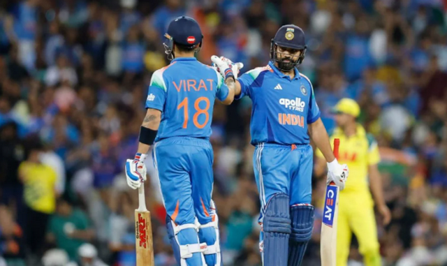 সাবলীল ব্যাটিংয়ে ৫৬ বলে ক্যারিয়ারের ৭৪তম ফিফটি তুলে নেন কোহলি। অন্যদিকে দুর্দান্ত ব্যাটিংয়ে ১০৫ বলে সেঞ্চুরি তুলে নেন রোহিত। ৬৯ বল হাতে রেখে দলের জয় নিশ্চিত করে মাঠে ছাড়েন তারা। রোহিত ১২৫ বলে ১২১ ও কোহলি ৮১ বলে ৭৪ রানে অপরাজিত থাকেন।